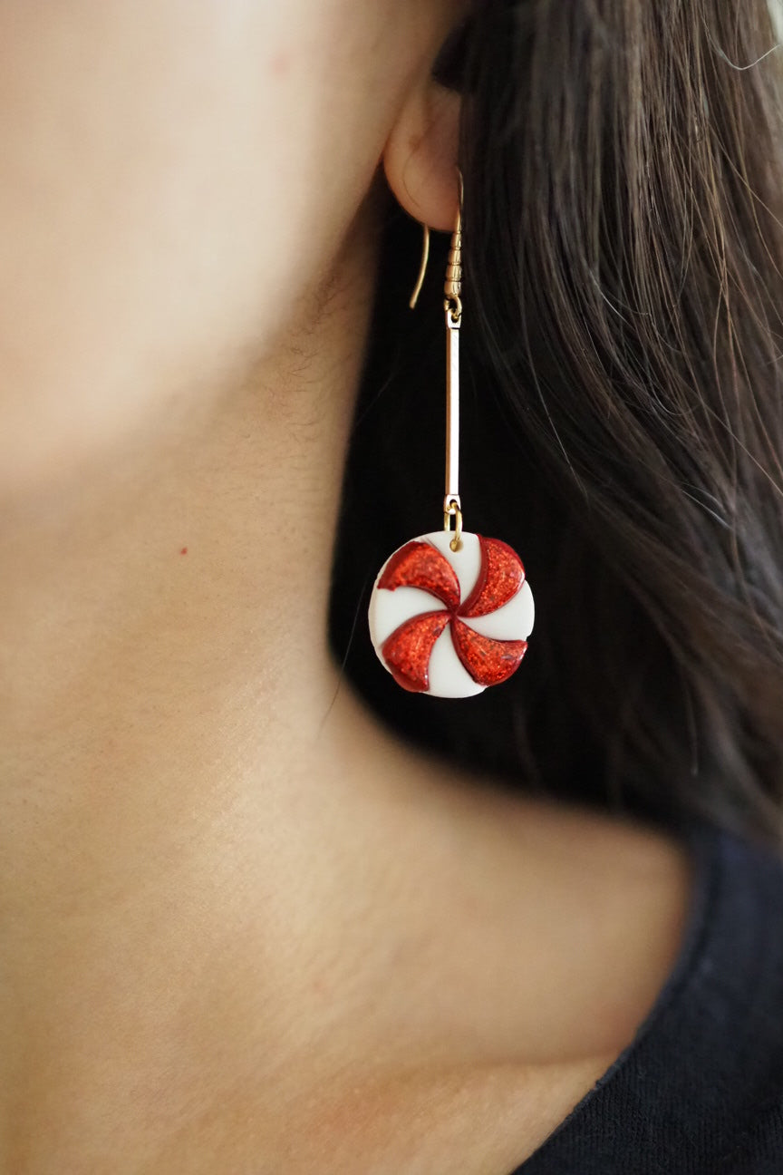 Boucles d'oreilles en forme de bonbon à la menthe, délicatement façonnées à la main.